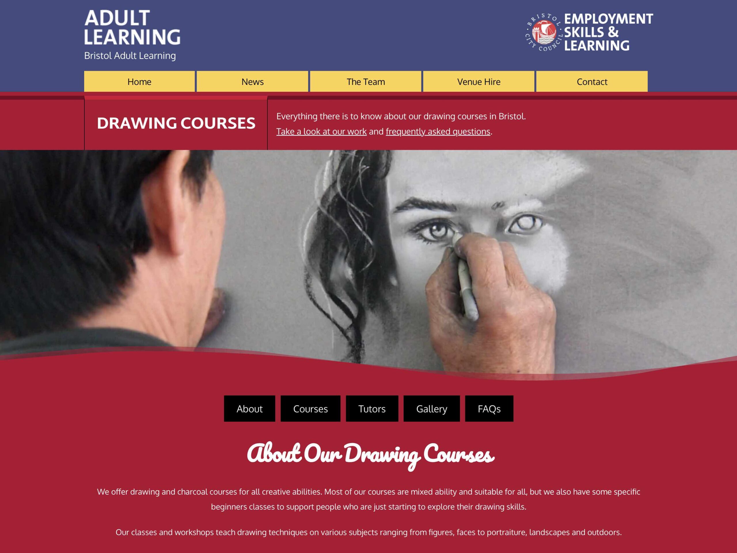 Bristol Adult Learning wanted to improve the visibility of its drawing courses and make it easier for prospective learners to discover the wide range of classes available. Standard course category pages provided a basic list of courses, but they lacked the depth, context and visual appeal needed to compete in a crowded market.