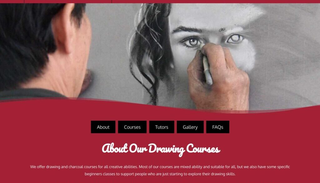 The large “Drawing Courses” heading provides a strong topical signal for search engines while also making the purpose of the page instantly clear.