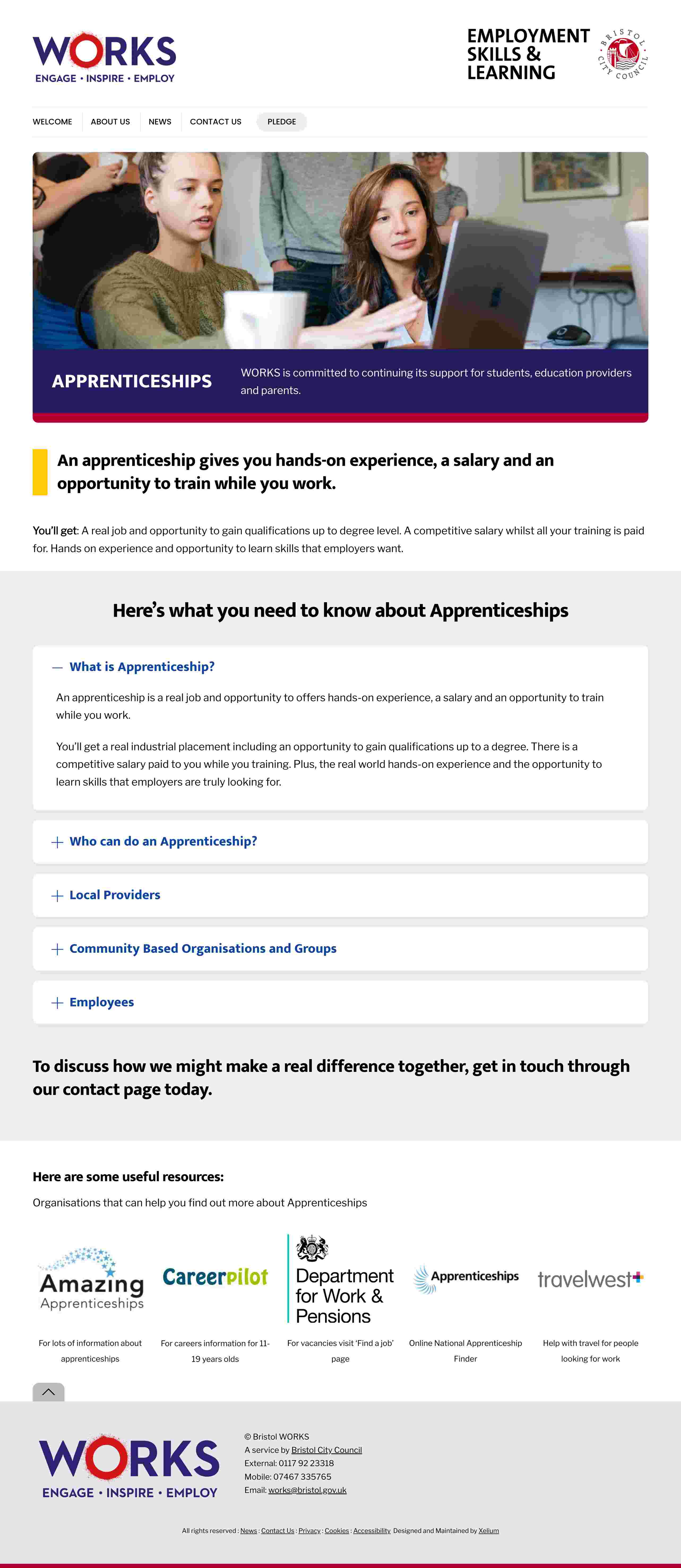 Including resource links makes the page more useful and positions Bristol WORKS as a helpful guide rather than simply an information provider.