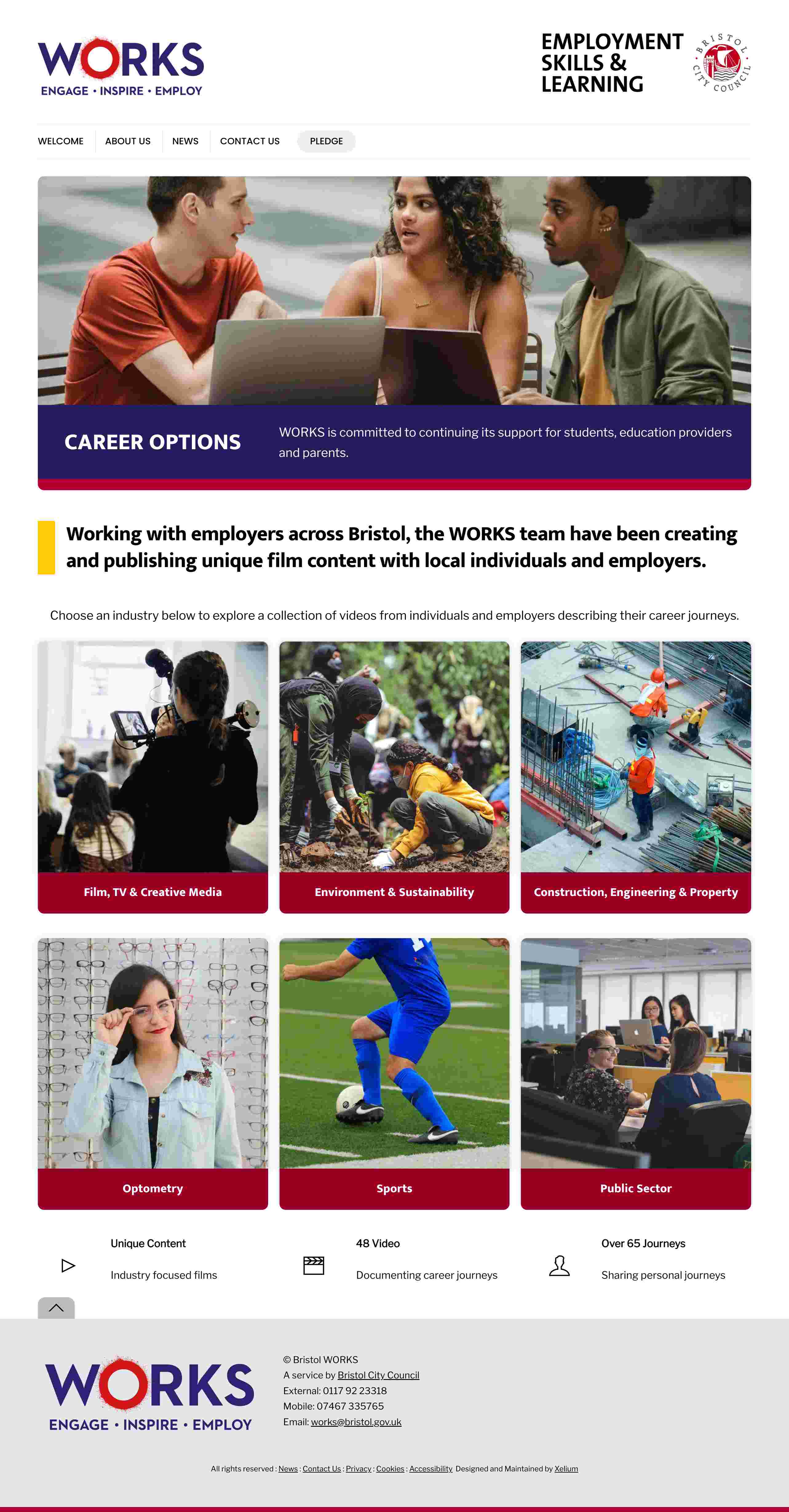 After creating the main audience pathways for Young People, Schools and Education Providers, Employers and Projects, Xelium Ltd developed a series of supporting pages designed to take visitors further into the Bristol WORKS website.